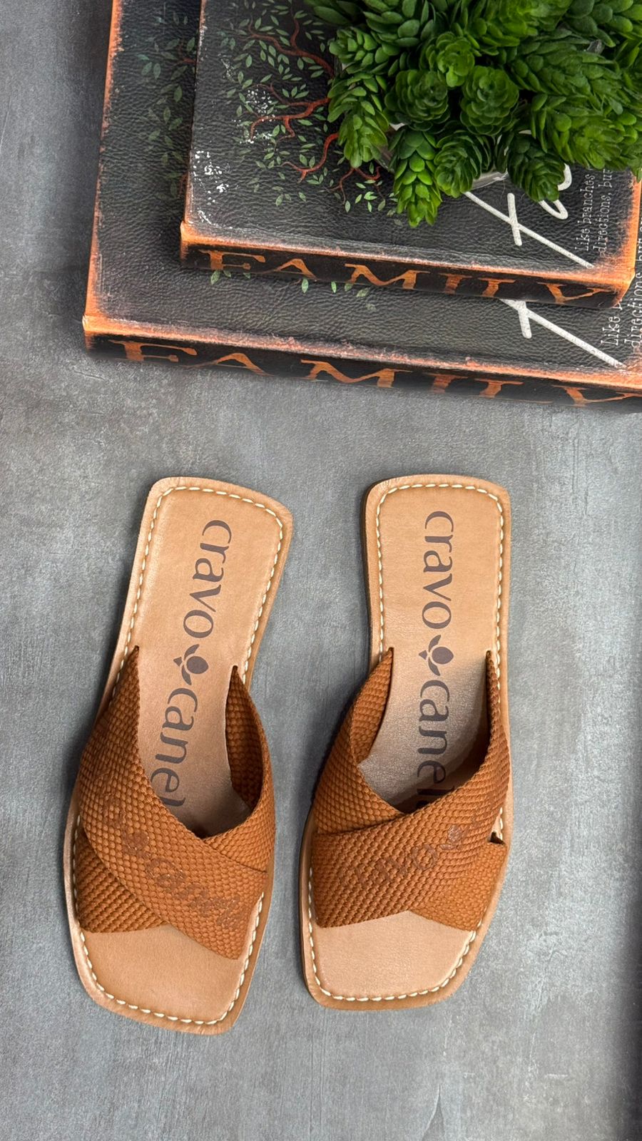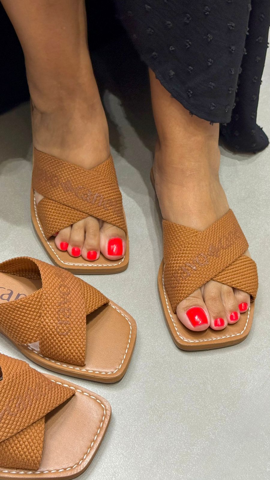 Rasteira Cravo & Canela com tiras em X em gorgurão, trazendo um visual moderno e delicado. Conta com palmilha confortável, solado flexível e ótimo ajuste aos pés, ideal para o dia a dia com praticidade e estilo.
