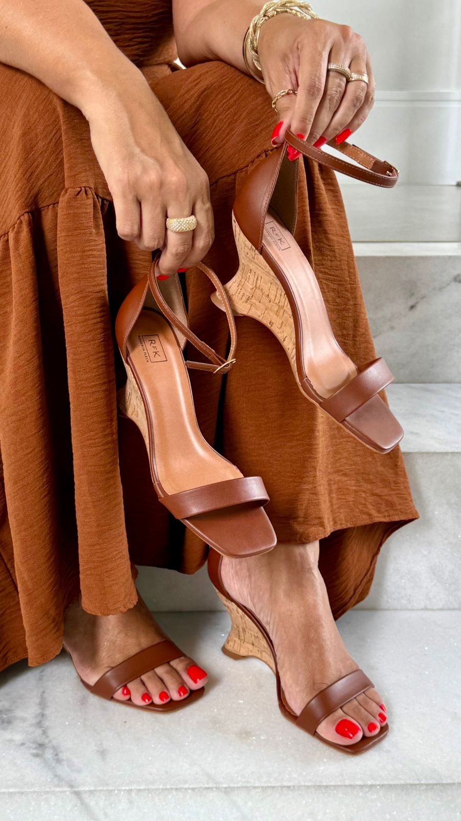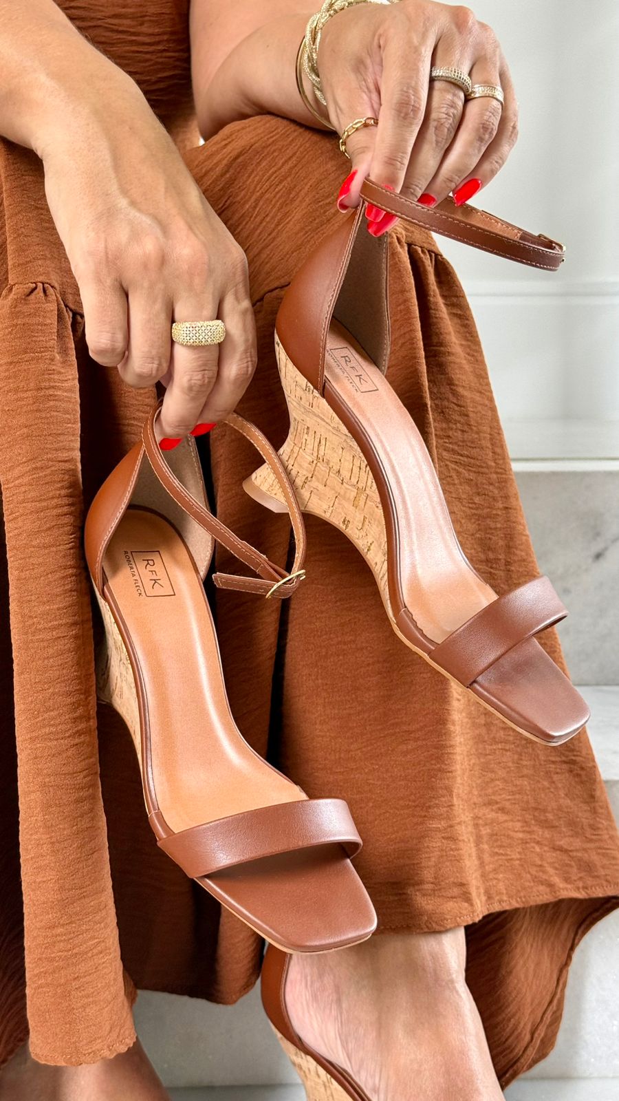 Sandália anabela na cor chocolate, com salto moderno de 7 cm, que une estilo, conforto e sofisticação. O modelo proporciona ótima estabilidade ao caminhar, enquanto o tom elegante valoriza diferentes produções. Versátil e atual, é perfeita para compor looks do dia a dia ou ocasiões especiais com charme e praticidade.