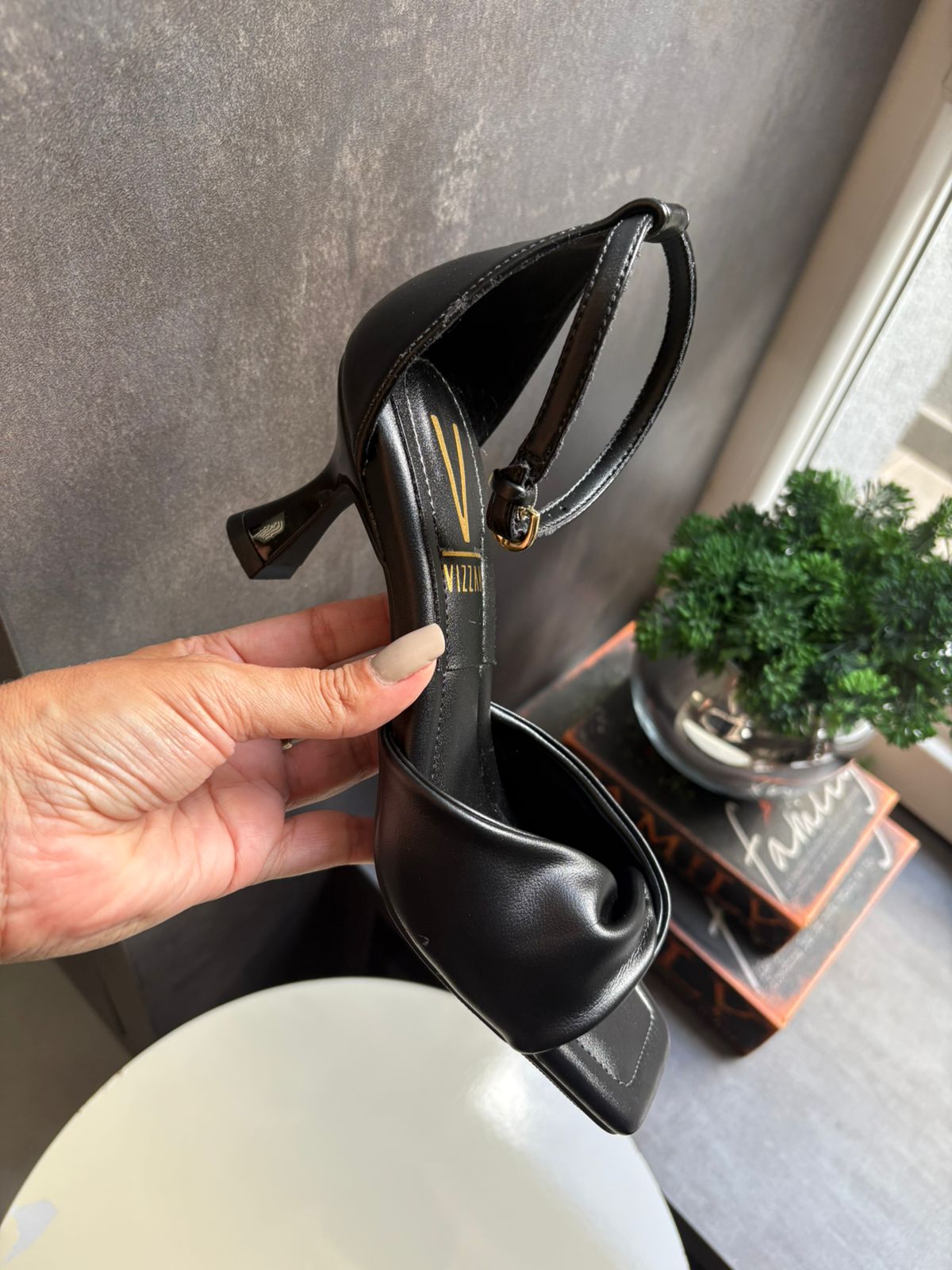 Sandália Vizzano salto taça de 6 cm na cor preta, com design básico e elegante. Possui tiras delicadas, acabamento clean e palmilha confortável. Um modelo versátil, ideal para compor looks do dia a dia ou ocasiões mais formais.