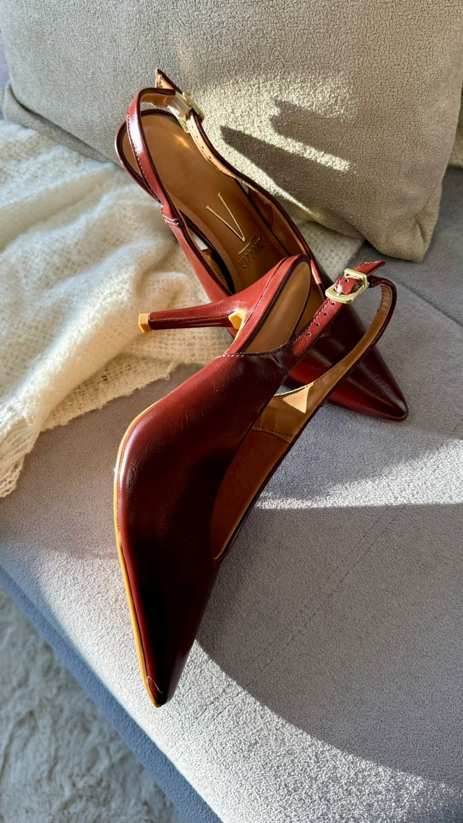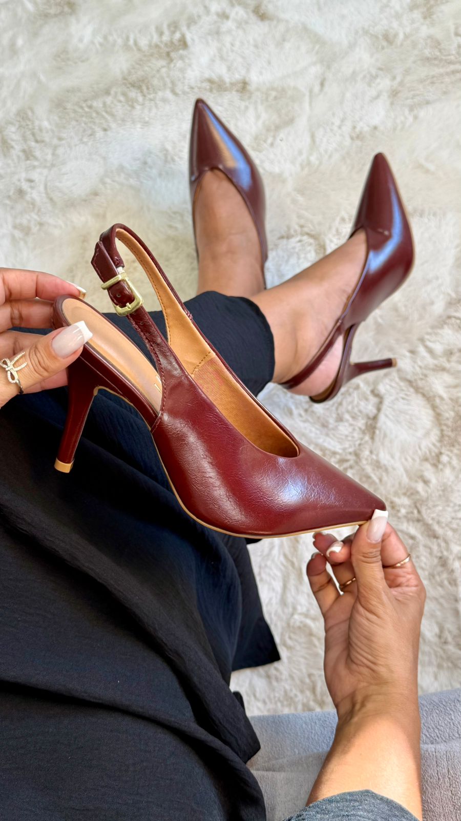 O slingback Vizzano de bico fino na cor canela traz um visual elegante e atemporal. Com salto fino de 9 cm e design fechado, é perfeito para compor looks sofisticados com muito estilo e feminilidade.