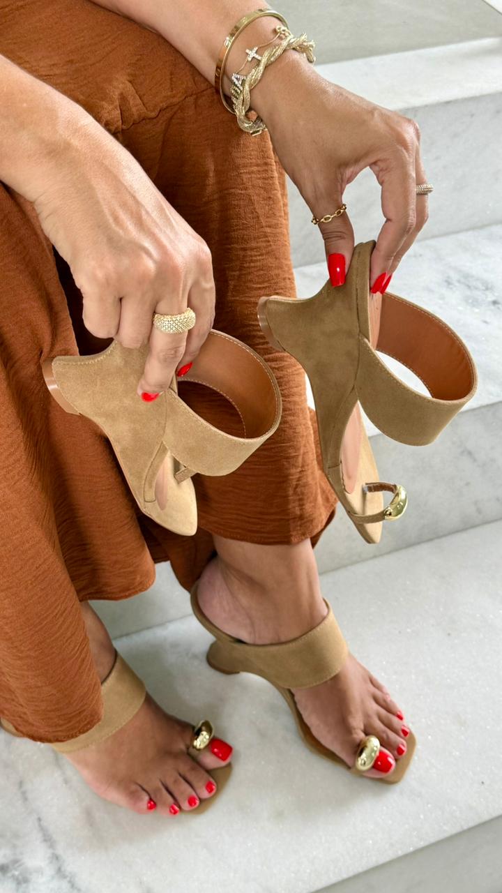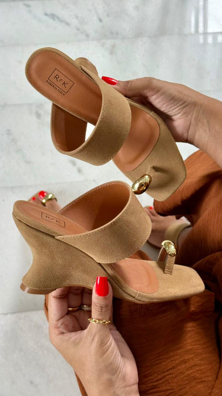 Sandália RFK anabela na cor rato, com salto moderno de 7 cm, que une conforto, estilo e sofisticação. O modelo possui tira macia no peito do pé e detalhe dourado no dedo, trazendo charme e elegância ao visual. Estável e confortável, é perfeita para compor looks modernos, do casual ao mais refinado.
