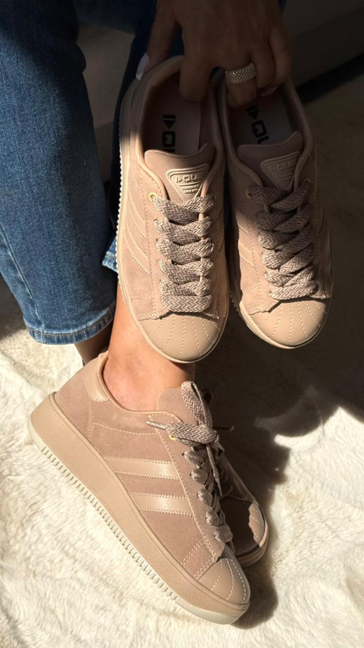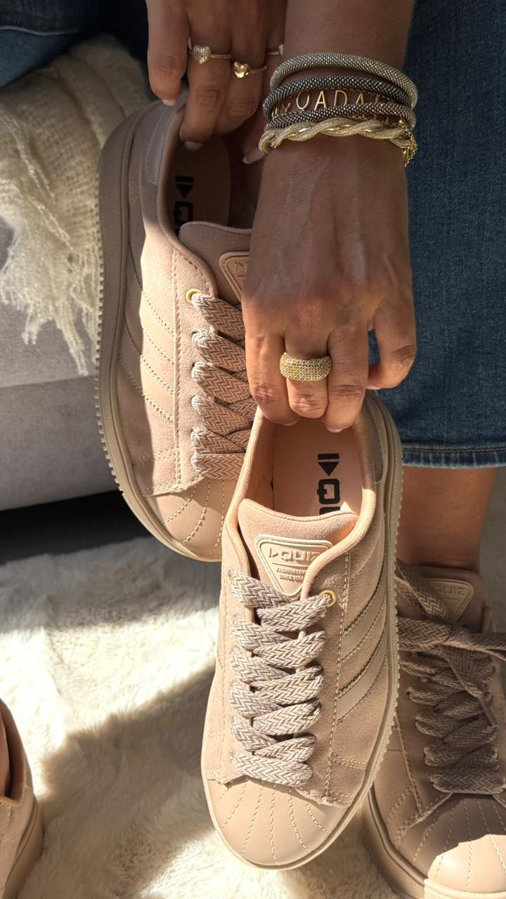 Tênis Quiz na cor marrom, com design clássico e versátil. Confeccionado em material confortável, possui solado resistente e acabamento moderno, ideal para o dia a dia com muito estilo e praticidade.