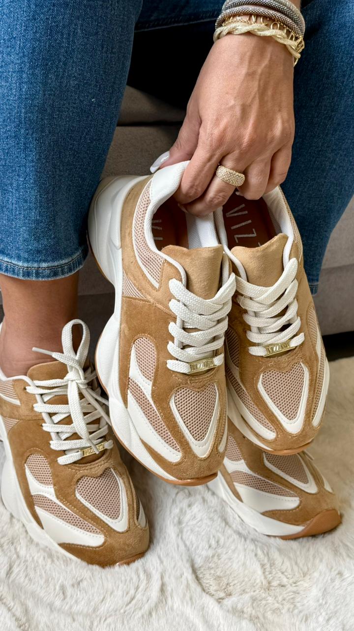 Tênis Vizzano com design esportivo e moderno, confeccionado em material de alta qualidade com combinação de cores versátil em caramelo e bege. Conta com recortes estilosos perfeito para compor looks casuais com personalidade.